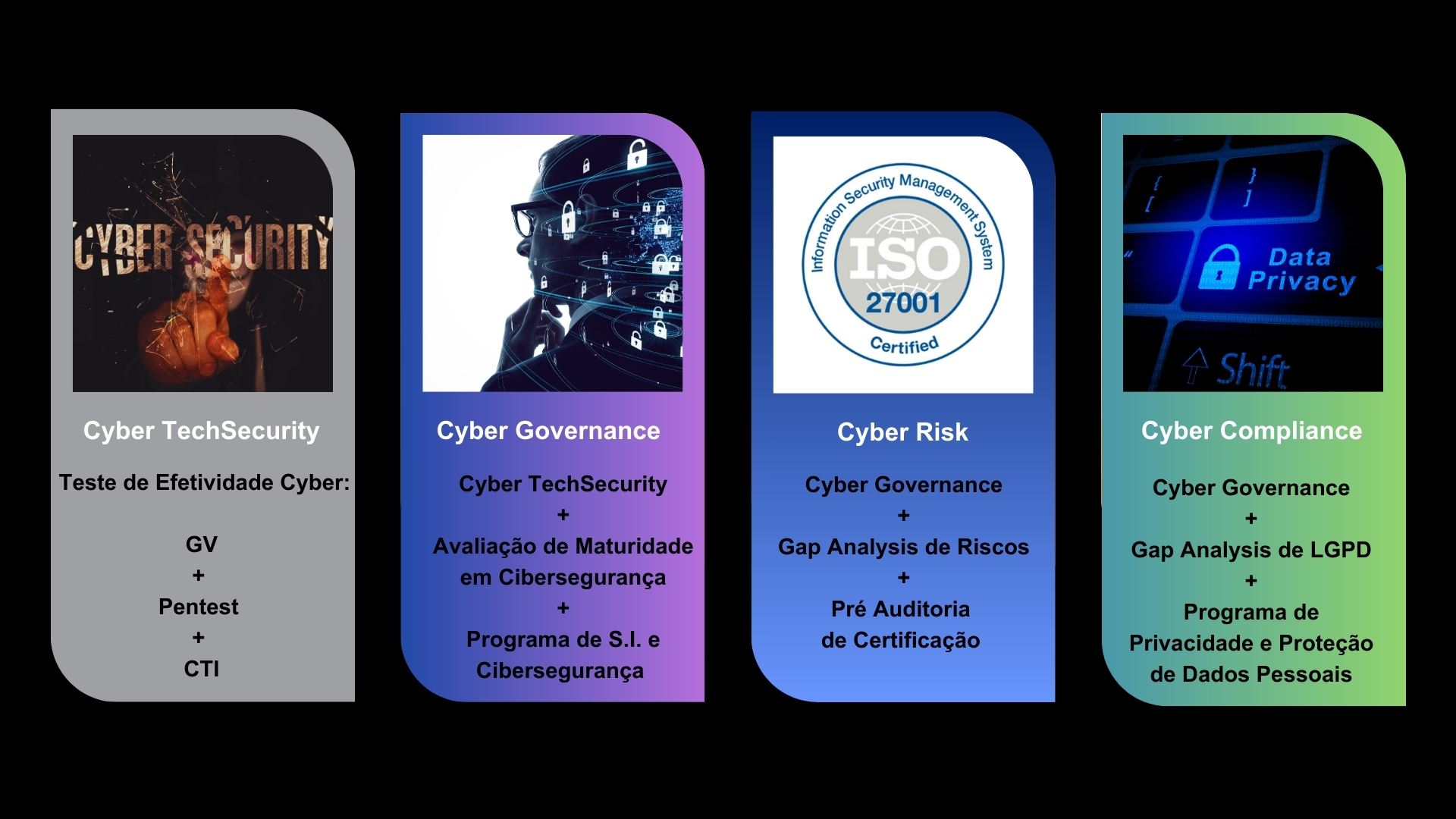 Cyber Governance: Crie e conecte um Plano de Governança Cibernética totalmente alinhado à Estratégia de Negócios. Aumente sua Resiliência Organizacional e assegure a continuidade do seu negócio contra apagões cibernéticos, ataques hackers ou quaisquer cenários diruptivos.