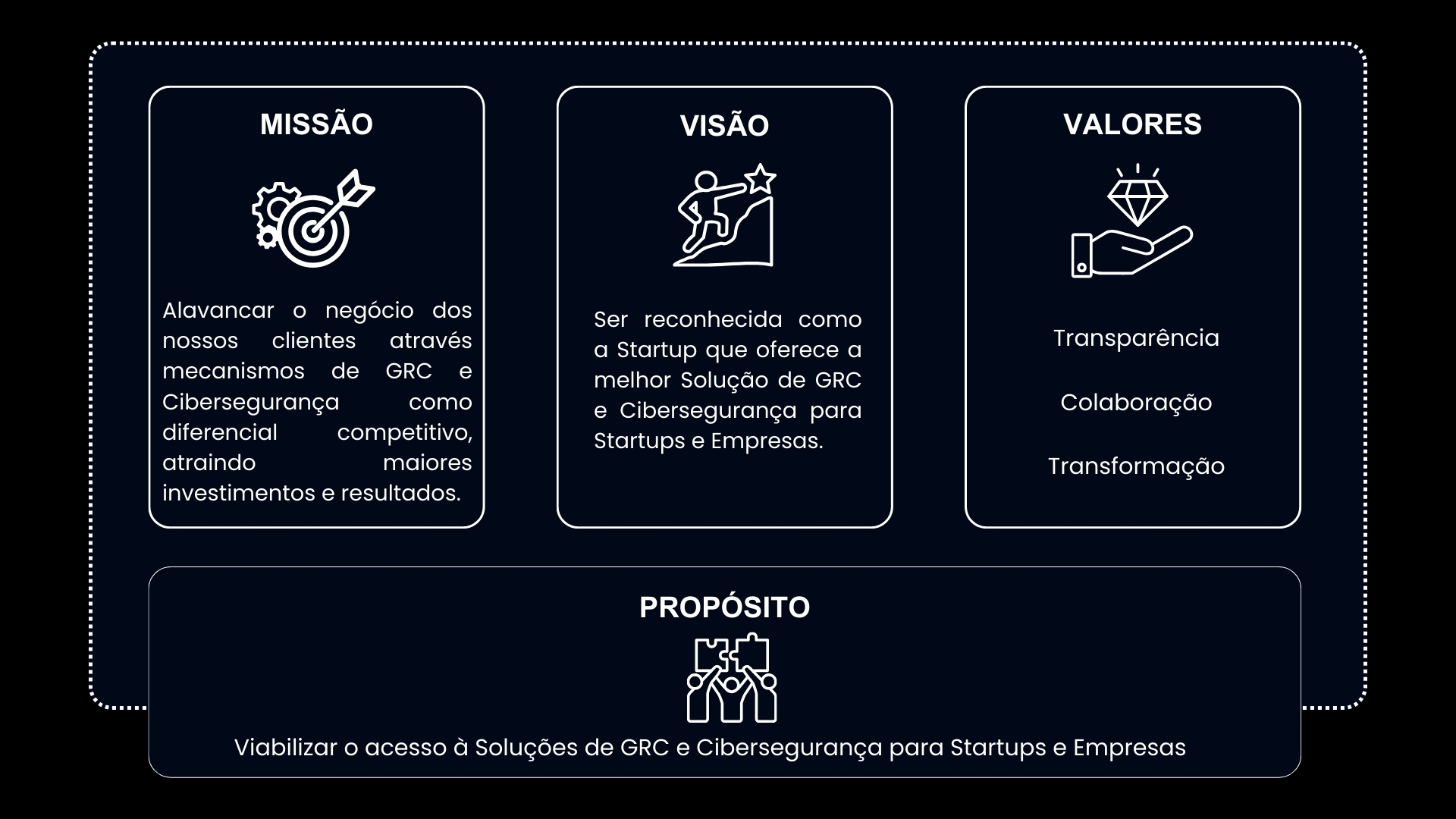 Somos a Startup de GRC (Governança Risco e Compliance) & Cibersegurança. Desde 2016 atuamos em diversos segmentos como: Automobilístico, Saúde, Energia, Tecnologia e Financeiro.